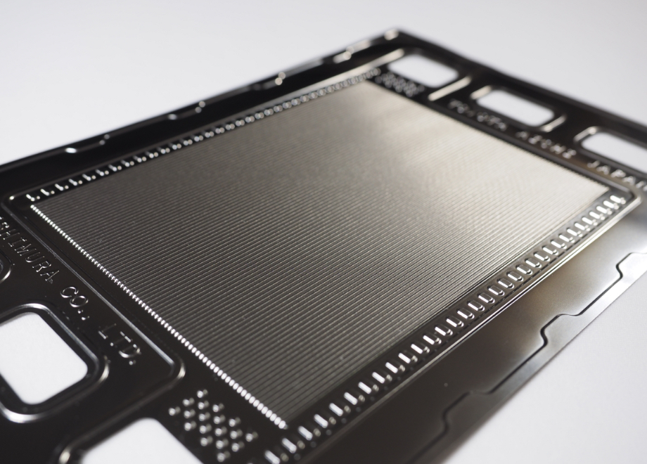 Here at Nishimura, progressive press forming using rigid and reliable presses, and digital controlled press forming with high-precision servo presses, are performed. Precision stamping tools for press forming are made in-house, which reflects our commitment to the utmost precision. These efforts have helped us produce excellent and reliable products such as metal separators for fuel cells and electronic components, which are enjoying significant reputation from customers from home and overseas. Metal separators for fuel cells are made of so-called "hard-to-form" material, such as stainless steel and titanium. We've been undertaking extensive technical development, to make press forming of these challenging materials possible.