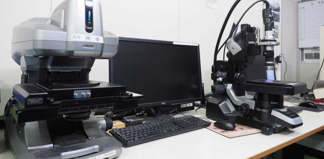 Description Image measuring machine (Left) Microscope (Right) Manufacturer Keyence Keyence Model VR-3000 VHX-1000 Features Resolution:0.1µm Fine profile measuring machine 1000x